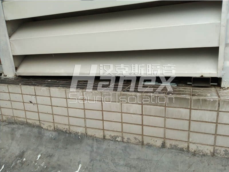 2、11臺(tái)風(fēng)機(jī)電機(jī)噪聲、風(fēng)口噪聲、管道震動(dòng)噪聲經(jīng)由磚墻、通風(fēng)消聲百葉、吸隔聲屏障墻、頂棚巖棉板組成的隔聲罩,吸聲圍擋處理,噪聲減小約15-20dB(A);