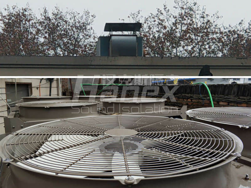 (1)空調(diào)室外機(jī)組排風(fēng)口安裝排風(fēng)消聲器