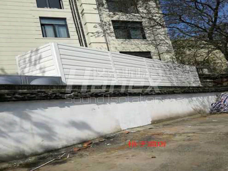 根據(jù)技術(shù)人員現(xiàn)場(chǎng)勘測(cè)以及我公司結(jié)合專業(yè)的聲學(xué)計(jì)算設(shè)計(jì),我公司技術(shù)人員發(fā)現(xiàn)空調(diào)室外機(jī)工作運(yùn)行時(shí)所產(chǎn)生的噪聲往外擴(kuò)散,影響其南側(cè)居民區(qū)的生活環(huán)境。因此,為進(jìn)一步控制空調(diào)室外機(jī)組噪聲的影響,我公司技術(shù)人員結(jié)合以往同類項(xiàng)目案例經(jīng)驗(yàn),采用吸隔聲屏障對(duì)空調(diào)室外機(jī)組東北側(cè)進(jìn)行噪聲控制措施處理,控制其工作產(chǎn)生的噪聲往居民區(qū)擴(kuò)散。